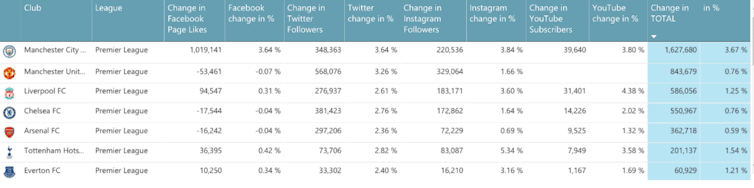 Suddenly, the millions of followers accrued over years of effort could be no more and the content and engagement could be lost. So far, the numbers show that social media followers and engagement is continuing to increase for football clubs, although some stagnation of Facebook use can be seen.