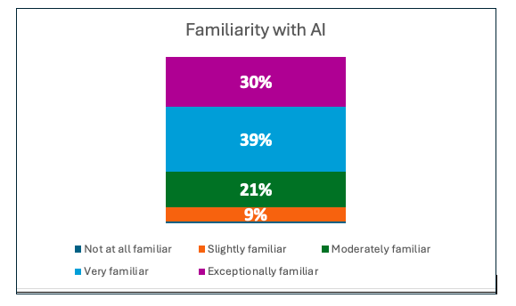 The majority of respondents claimed to have a high level of familiarity with AI.