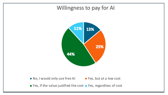 Overall, the majority of consumers are open to paying for AI, with only 13% insisting on using only free options.