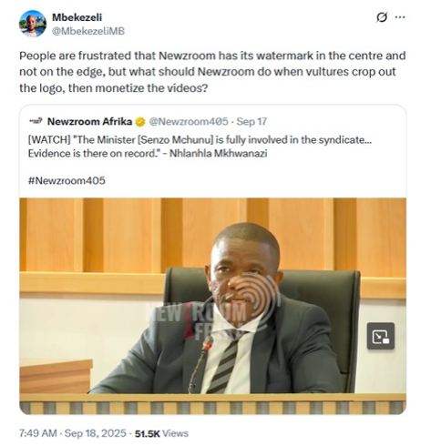 Human Rights lawyer, Mbekezeli Benjamin, noted the necessity of the measure, posting, “People are frustrated that Newzroom has its watermark in the centre and not on the edge, but what should Newzroom do when vultures crop out the logo, then monetise the videos?”