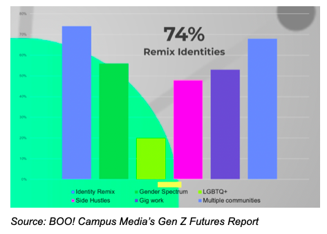 In terms of identity, fluidity is everything. “Careers are non-linear, interests shift quickly, relationships flow between offline and online, cultures blend, and gender and sexuality are open spectrums. They do not equate fluidity with being ‘woke’.