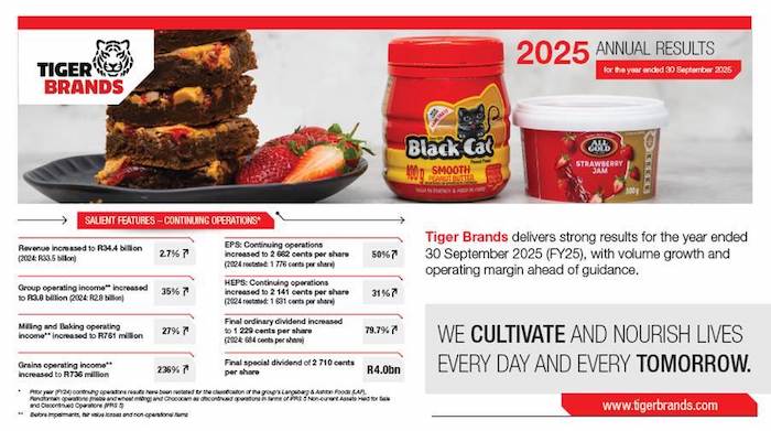 Tiger Brands delivered a strong full-year performance for the year ended 30 September 2025, marked by solid growth and continued cash generation, demonstrating disciplined operational excellence while driving affordability for consumers who remain under pressure and value seeking.