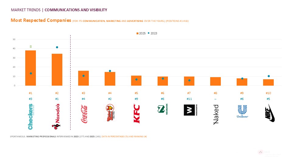 Checkers dominates South Africa’s marketing landscape, claiming both the top campaign spot with Checkers Sixty60 and the title of company most respected for its marketing in SCOPEN’s 2025 AGENCY SCOPE study. The biennial peer-evaluation survey asked marketing professionals to rate the campaigns and companies they most admire.