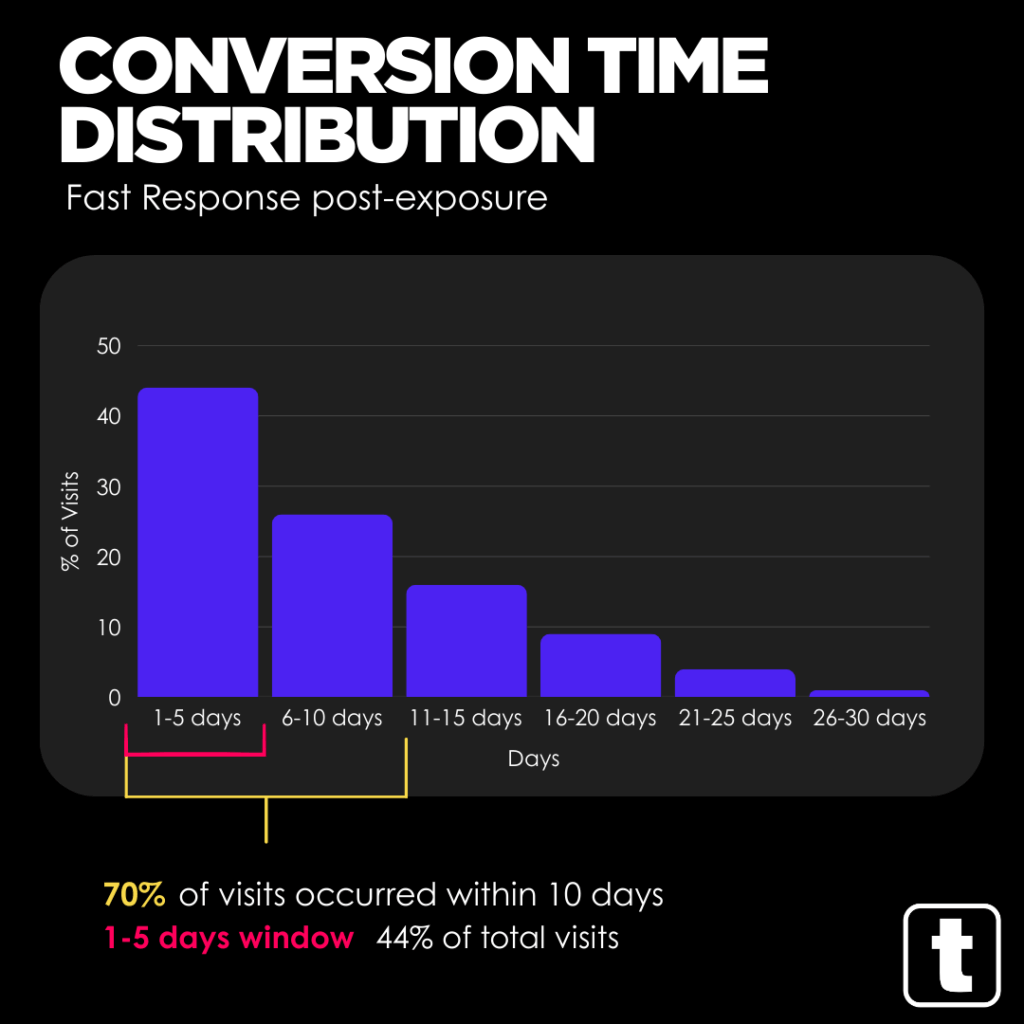 What stood out immediately was the speed of response. Almost half of all visits took place within the first five days. That short conversion window tells us something important about how DOOH works when it’s used well.