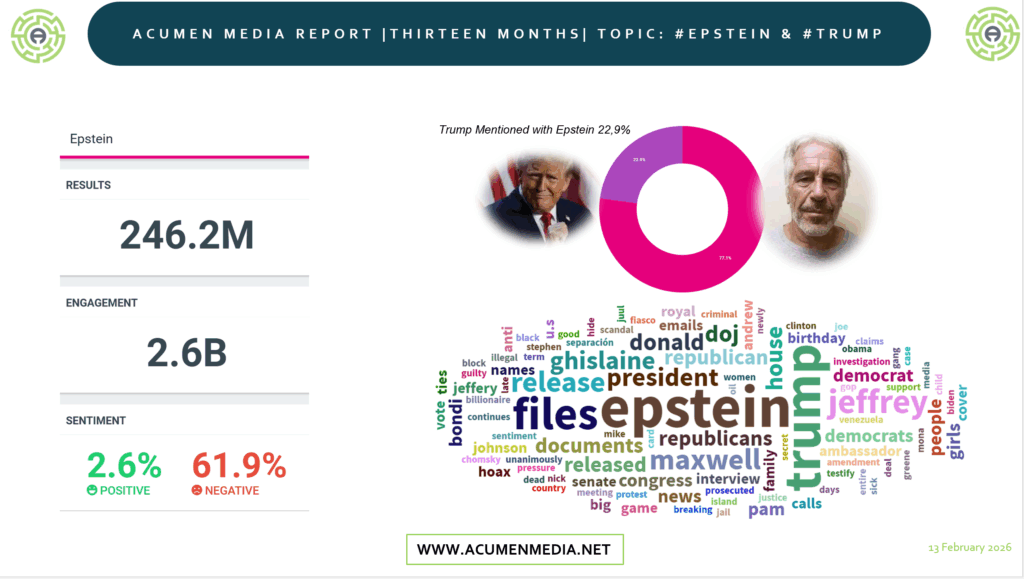 Donald Trump makes up almost a quarter of the conversations on Epstein. Sorry, got completely got distracted there, Acumen stats will do that. Okay, so here’s this chick, Bondi, Pammy Bondi. She’s sitting in front of the DOJ and she is being grilled. Only Trump would send a woman in to do his filthy job.